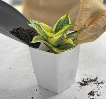 1. 小心取出植株,輕輕晃動一下根部。