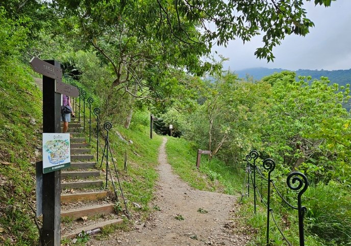- 售票口 → 好漢坡步道上坡 (挑戰一小段,當熱身!) → 觀海亭 (爬坡的獎勵,360度視野超讚) → 續行步道 → 森林浴步道 → 水流腳底按摩步道 → 藥用植物園區 → 回售票口。