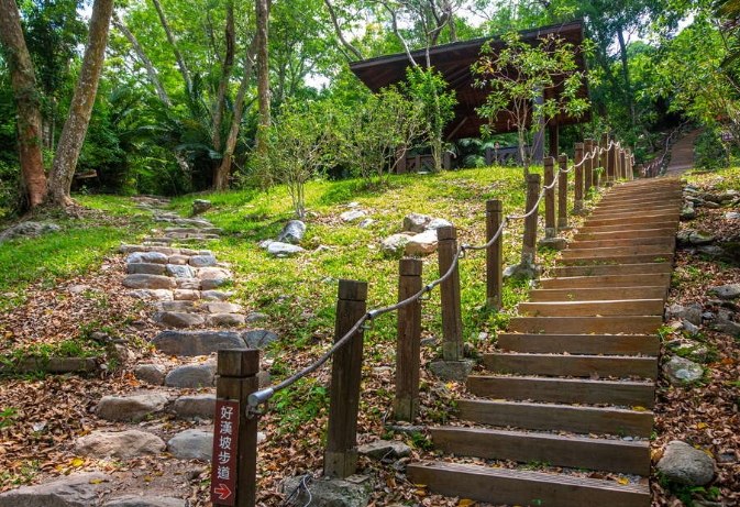 - 爬上好漢坡的終極獎勵!這個位於高點的涼亭,視野只能用「遼闊」來形容。天氣晴朗時,腳下是層層疊疊的翠綠森林,知本溪蜿蜒其中,遠處是蔚藍的太平洋海天一色。黃昏時分來看夕陽,更是浪漫到不行。拍照打卡絕對首選!