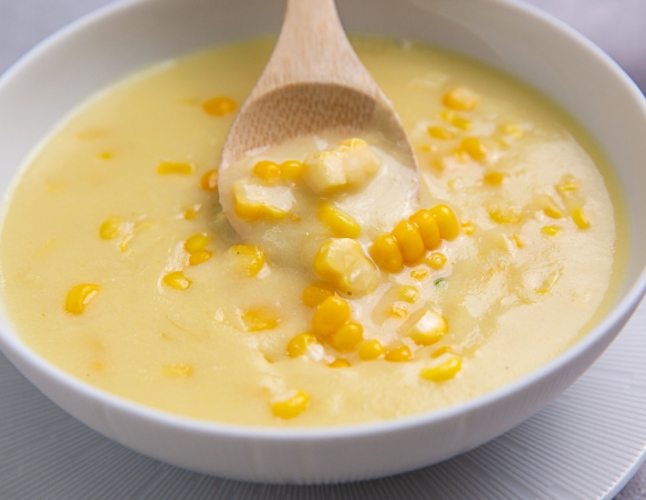 有朋友吃素?或是對奶油、麵粉比較敏感?沒問題!這款清爽版的玉米濃湯一樣濃郁好喝,而且更清爽無負擔。祕密武器是... 馬鈴薯!