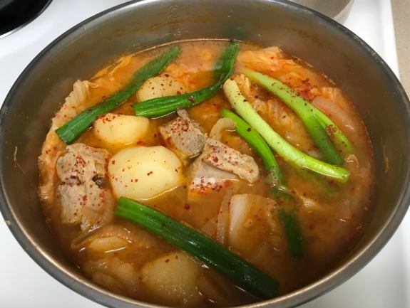 4. 耐心等待: 加入主角馬鈴薯塊,確保湯汁大概淹過食材。蓋上鍋蓋,保持最小火慢燉30分鐘。這段時間千萬不要去攪拌它!讓馬鈴薯穩定釋放澱粉。