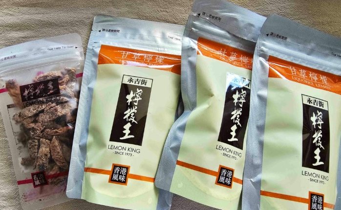 - 檸檬王甘草檸檬: 老字號涼果舖,就在歌賦街,每次經過都看到排隊。他們的甘草檸檬潤喉生津,酸酸甜甜帶點回甘,非常地道,買回來送同事親友零差評。還有話梅、陳皮薑等選擇。
